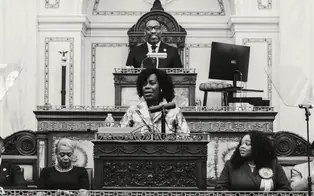 State Representative Morgan Cephas, Philadelphia City Controller Cindy Brady, Vice-Chairman of the Philadelphia City Commissioner’s Office Lisa Deeley, Chairman of the Philadelphia City Commissioner’s Office Omar Sabir, Philadelphia Sheriff Rochelle Bilal, Philadelphia District Attorney Larry Krasner, Philadelphia Register of Wills John Sabatina, State Senators Anthony Hardy Williams and Sharif Street, and Nikil Saval, Former Councilmembers Derrick Green, Janie L. Blackwell, and Blondell Reynolds Brown, were in Council Chambers for Mayor Cherelle Parker’s Third Budget Address.